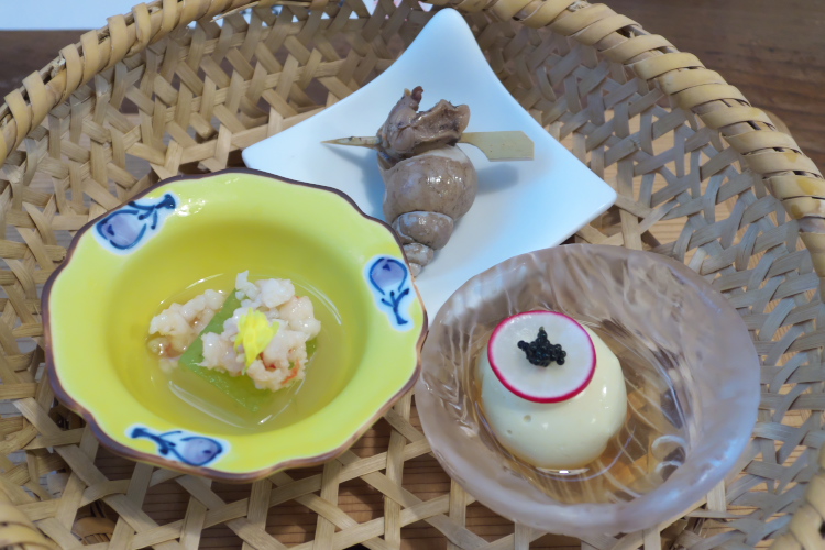 3,500円(税抜):前菜3種/お造り/信州牛のせいろ蒸し